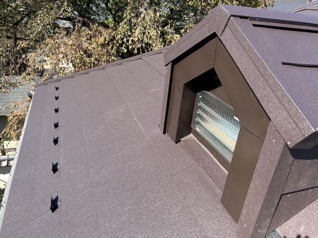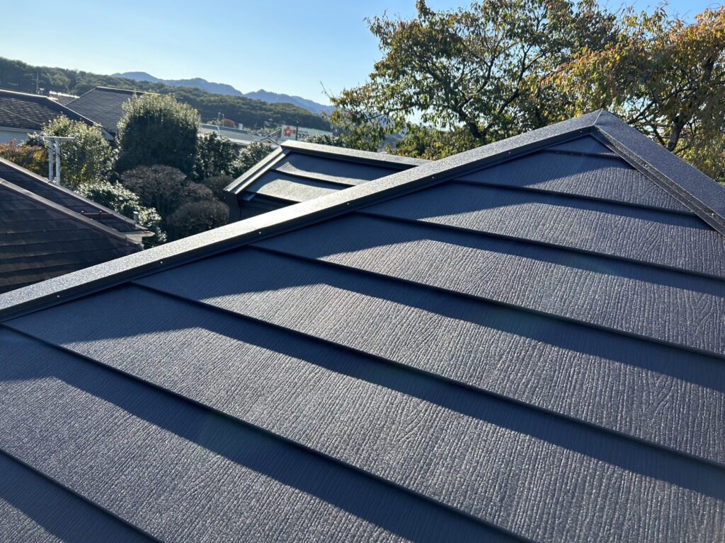 そして棟板金の取り付けを行い工事完了です。